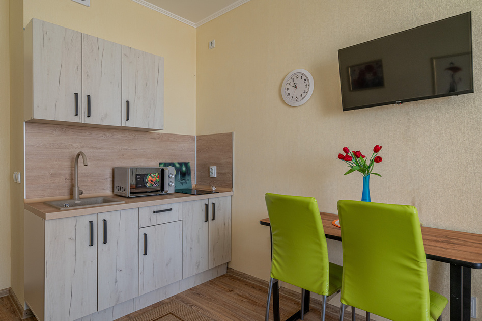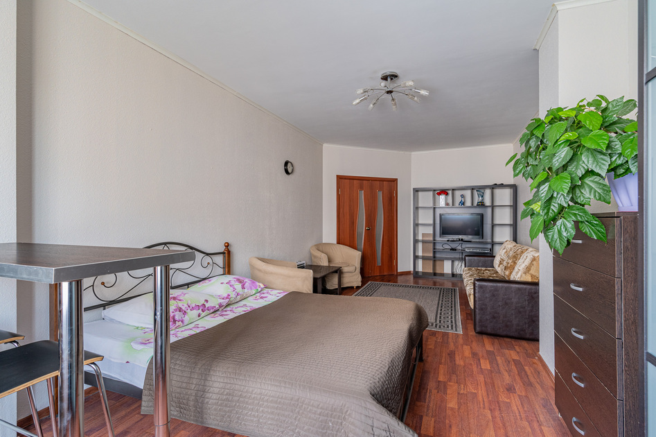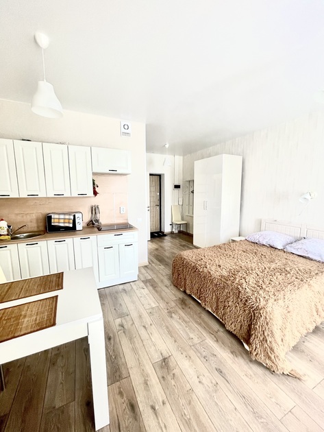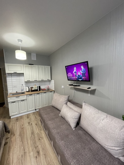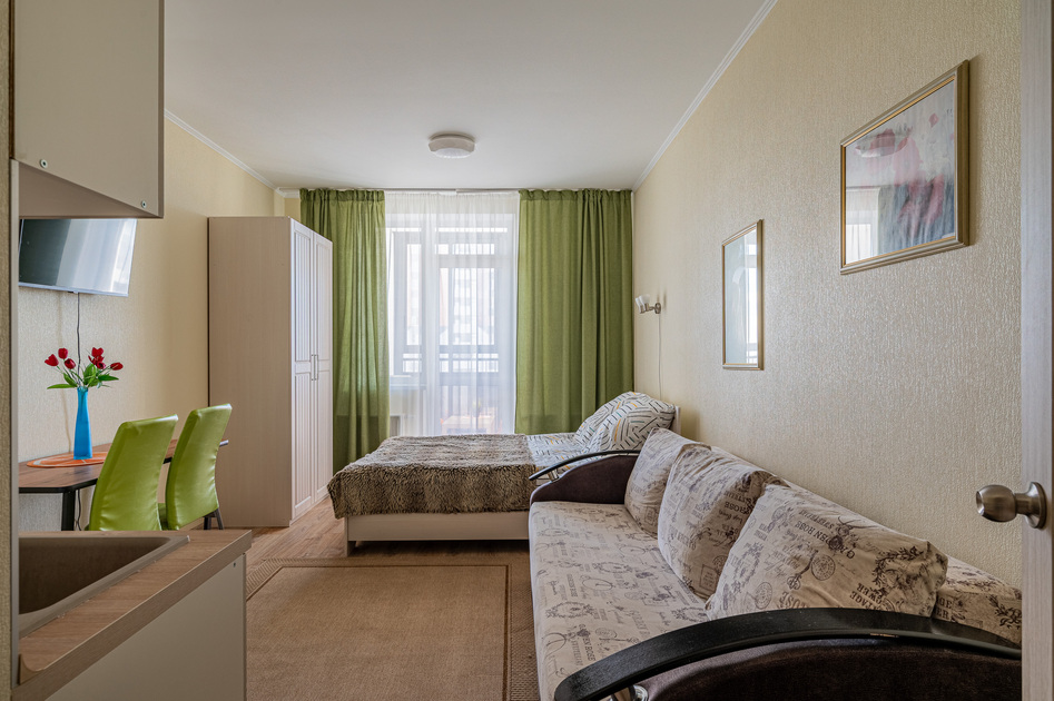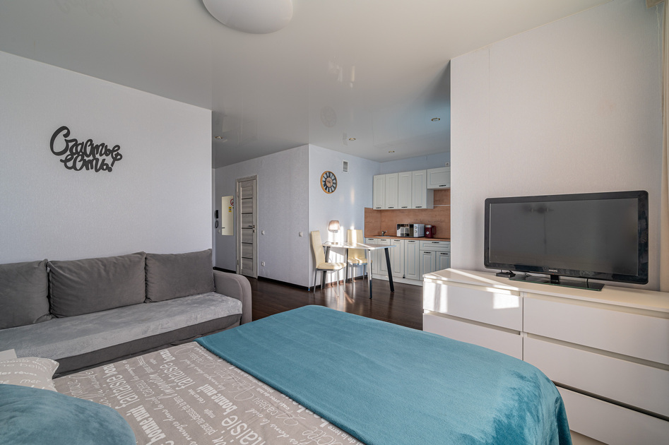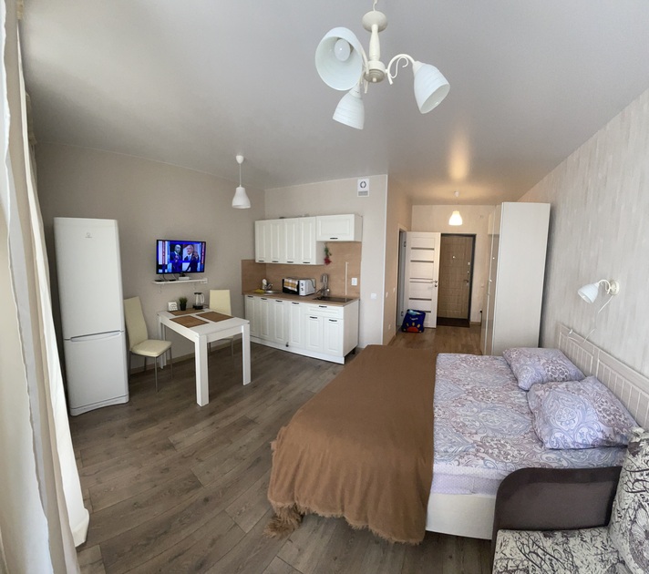 Просторная студия с Wi-Fi, интерактивным ТВ, полное оснащение бытовой техникой.