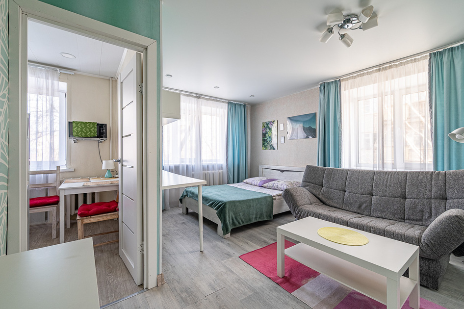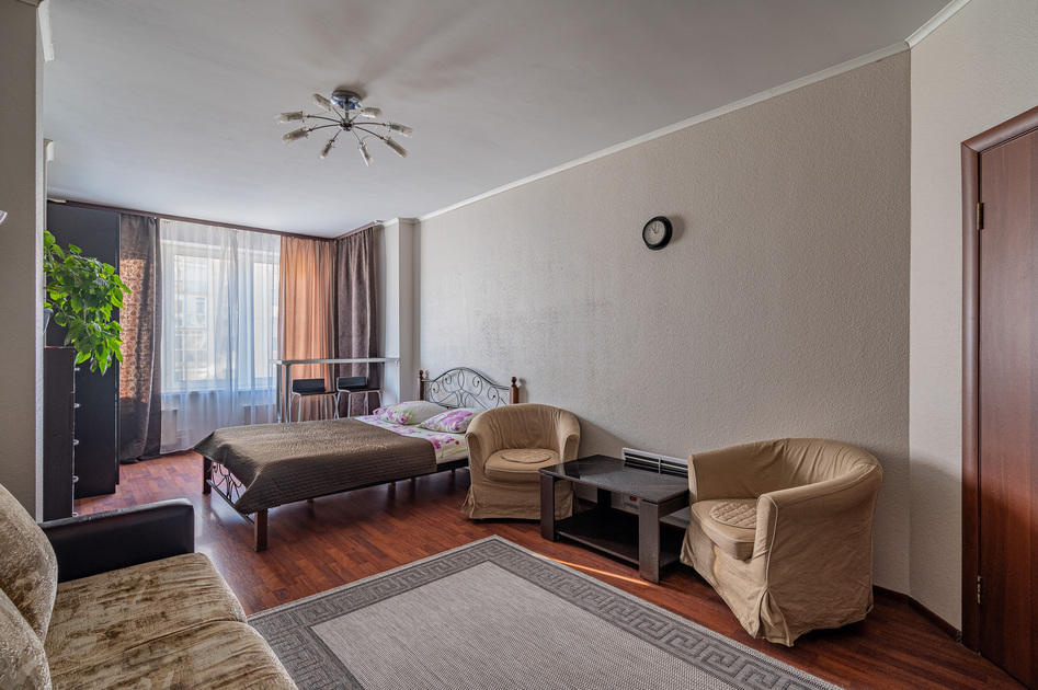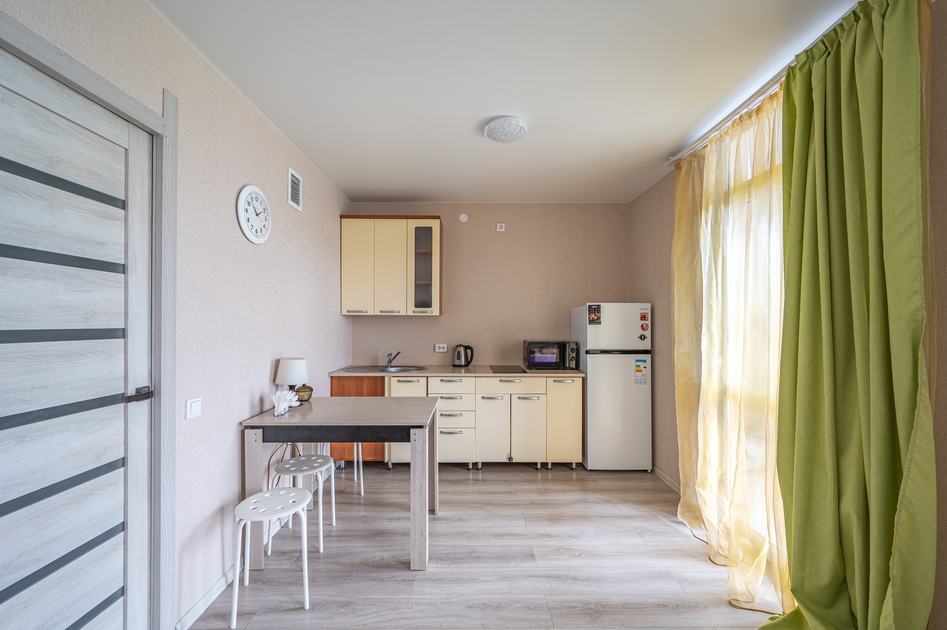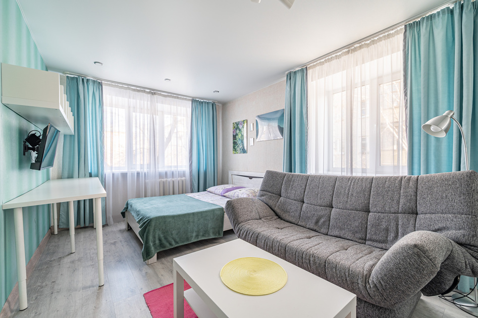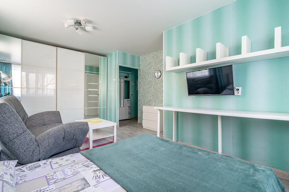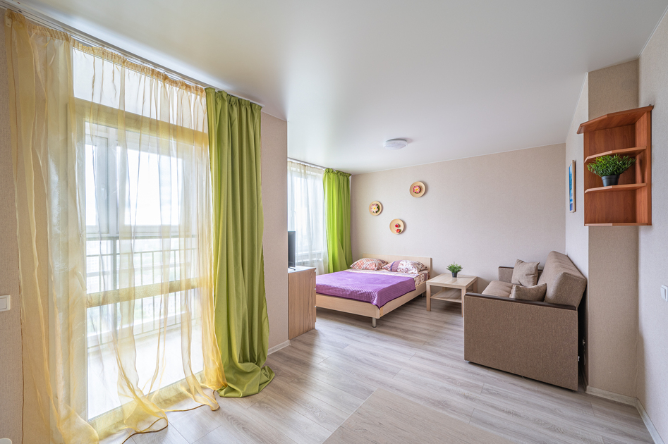 Просторная студия с Wi-Fi, интерактивным ТВ, полное оснащение бытовой техникой.
